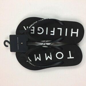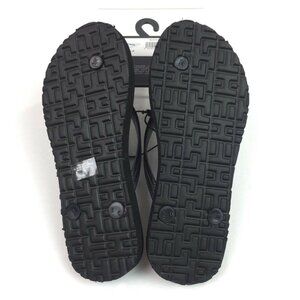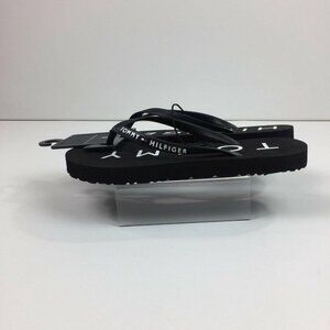 Tommy Hilfiger Womens Black Flip Flops Beach Sandals With Logo Strap Size 5