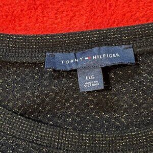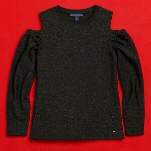Tommy Hilfiger Women’s Black & Gold Metallic Cold-Shoulder Top – Size L