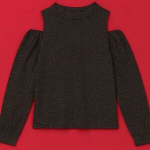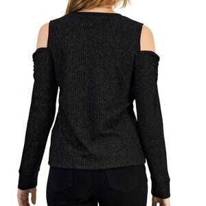Shine without overdoing it. This Tommy Hilfiger long-sleeve top features a chic black knit shot with gold metallic thread for a subtle, evening-ready sparkle. The cold-shoulder cutouts and softly ruched sleeves add shape while keeping the fit comfortable and flattering.