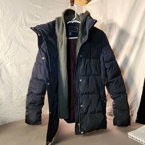 Tommy Hilfiger Womens Black Grey Long Sleeve Hooded Puffer Jacket Sz M TW9MP165