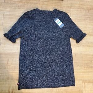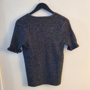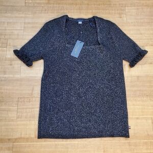Tommy Hilfiger Womens Black Metalic Sweater M Ruffle Shirtsleeves