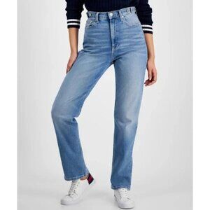 Tommy Hilfiger Women's Blue Julie Straight-Leg Button-Waist Jeans Size 24X28