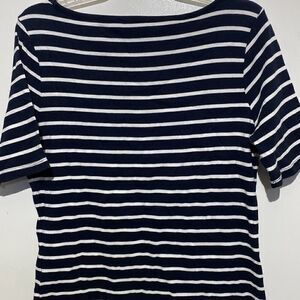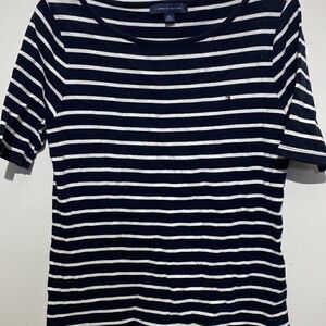 Tommy Hilfiger Women's Blue White Cotton Stripe Pullover Short Sleeve Tops Sz XL