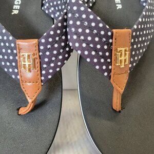 Small polka-dots add fresh whimsy to casual style in Tommy Hilfiger's Candis flip-flop sandals.