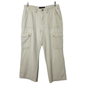 Tommy Hilfiger Women's Cargo Pants 8 Khaki Beige Wide Leg Chino High Rise Retro