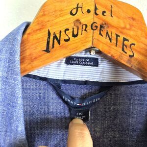 Tommy Hilfiger Women's Classic Fir Blue Button-Up Roll Tab Denim Shirt Sz Large