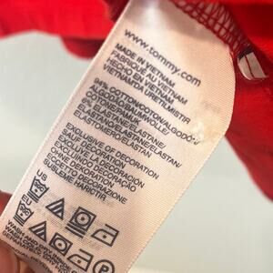 Womens Tommy Hilfiger Classic Fit red polo; see last photo for very small hole on the back near the collar.
