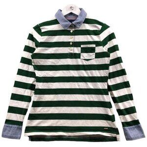Tommy Hilfiger Women's Collared Striped Pocket Long Sleeve Polo Shirt Size Medium