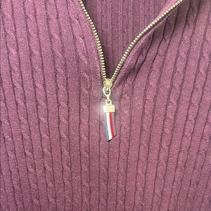 Tommy Hilfiger Women's Cotton Cable-knit Quarter-zip Sweater In Aubergine