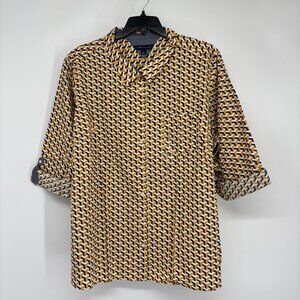 Tommy Hilfiger Women's Cotton Printed Roll-Tab Shirt Yellow/Blue/White 3X NWT