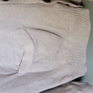 Light gray color. Buttons down the front with brown buttons. Pockets in the front. Has a sort of waffle knit texture to it. Great condition. Balletcore, schoolgirl, prep, old money, collegiate, neutral, normcore, oversized, slouch, relaxed, curvy, plus, fall, autumn, oversized, office