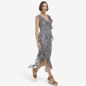 Tommy Hilfiger Women's Dress High-Low, Sky Captain/Ivory, 12