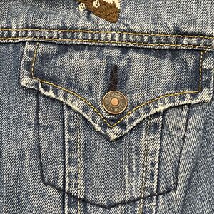 Tommy Hilfiger Womens Embroidered Y2K Jean Denim Jacket Distressed Sz L