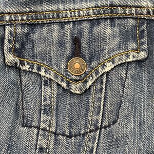 distressed jacket from Tommy Hilfiger. The distressed patterns are intentional