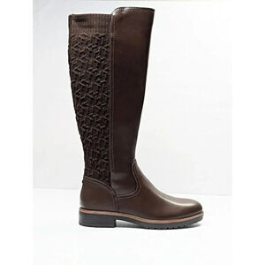 Tommy Hilfiger offers a sleek and stylish silhouette in these sophisticated Famian tall riding boots. A knit back with a TH cube deboss detail makes pulling this riding boot effortless.