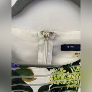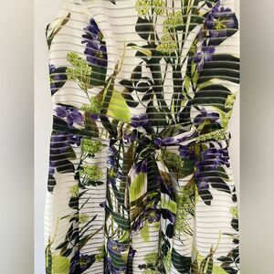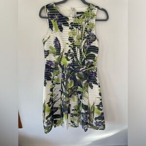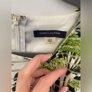 Tommy Hilfiger Women's Floral-Print Fit & Flare Dress (6, Green/Multi). Has a tie belt around the waist. Preowned in great condition. Slightly above the knee length