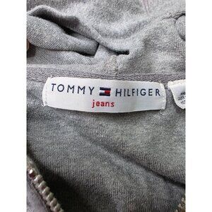 Tommy Hilfiger Women's Gray Cotton Hoodie Knit Sleeve Full-Zip Sweater Large