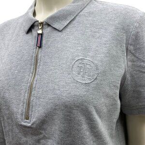 Tommy Hilfiger Womens Gray Polo Shirt With Quarter-Zip & Embroidered Logo L/G