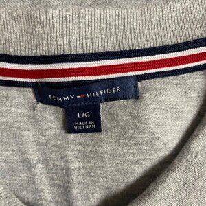 This Tommy Hilfiger gray polo shirt features a classic quarter-zip design, making it both stylish and practical.