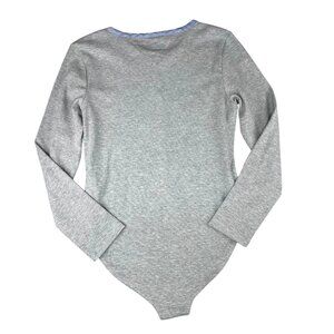 Tommy Hilfiger Womens Grey Long-Sleeve Bodysuit With Striped Button Detail Large