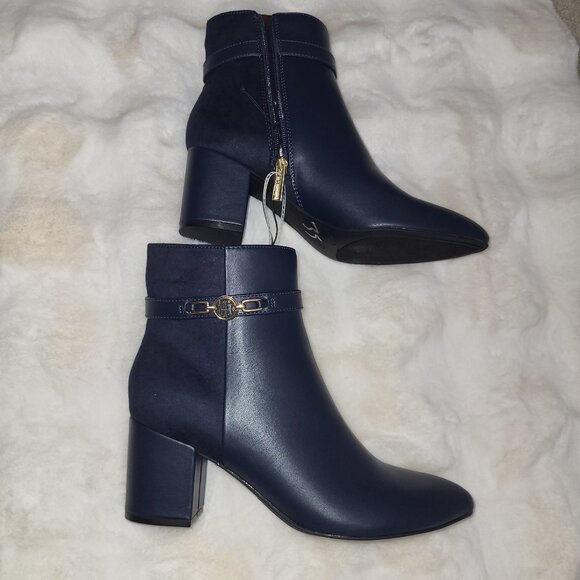 The Tommy Hilfiger Hatly bootie is a polished look for any fall wardrobe. This sleek bootie sits on a block heel, making it easy to be worn from the office straight out on the town.