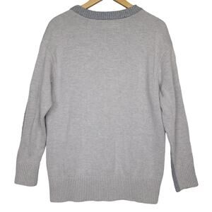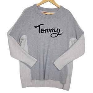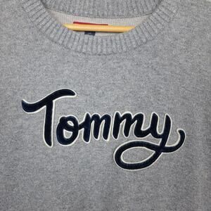 Tommy Hilfiger Women's Knit Velvet Logo Crewneck Wool Blend Sweater Large Gray