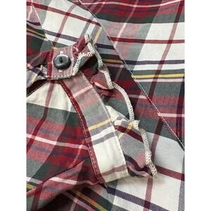 Tommy Hilfiger Women's L Plaid Red Green White Ruffle Button Long Sleeve Blouse