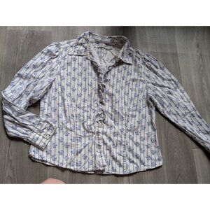 Tommy Hilfiger Womens L/XL Floral Striped Button-Up Shirt