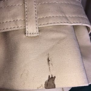 It does have a small stain on the cuff of one of the arms but it is nothing a good wash can't get out