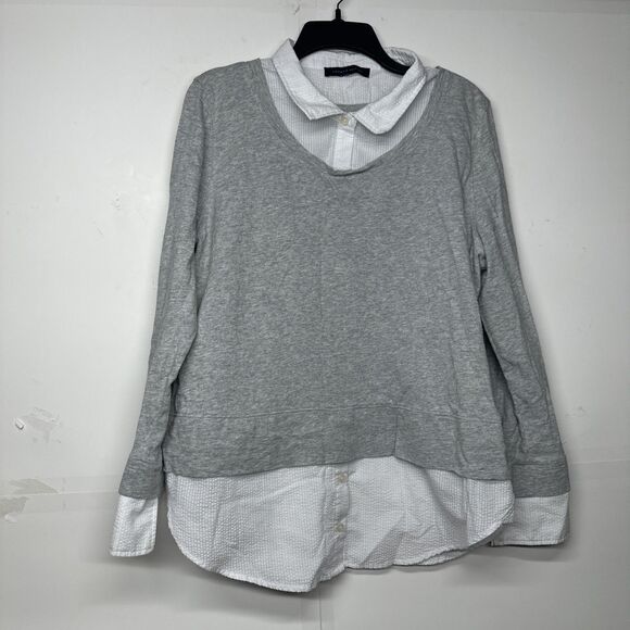 Tommy Hilfiger Women’s Layered Look Sweater Shirt Top Gray White Collared XL