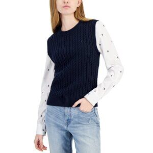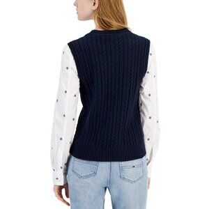 Tommy Hilfiger Women's Layered-Look Sweater Vest Navy Size S MSRP $90