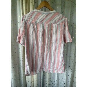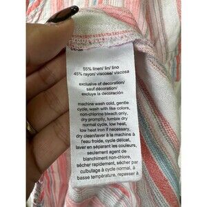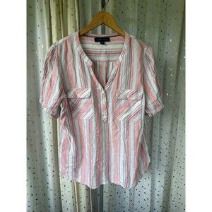 Tommy Hilfiger Women's Linen Blend Stripe V Neck Quarter Button Blouse XL