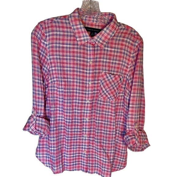 Tommy Hilfiger | Women’s Long Sleeve Plaid Pattern Button Down Blouse Top Sz S/P