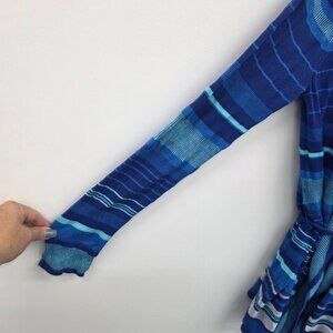 Tommy Hilfiger Womens M Blue Striped Cardigan Sweater Belted Open Front Layering