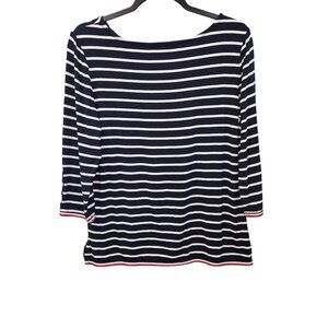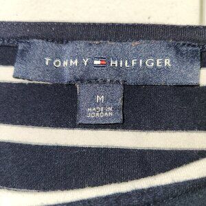 Tommy Hilfiger Women's M Blue White Striped Long Sleeve Pullover Knit Top 2304