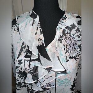 Tommy Hilfiger Women’s M White Floral Long Sleeve V-Neck Blouse Ruffle Detail