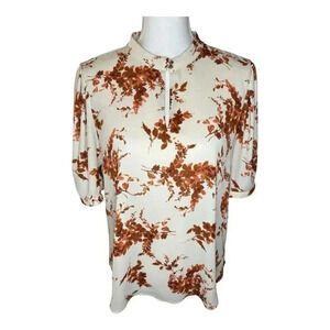 Tommy Hilfiger Women’s Medium Floral Georgette High Neck Puff Sleeve Blouse