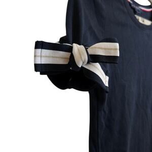 Tommy Hilfiger Women’s Medium Navy Tee Bow Sleeve Detail 100% Cotton Logo Shirt