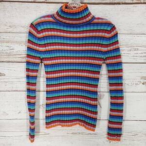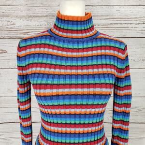 Tommy Hilfiger Women's Multicolor Stripe Mock Neck Sweater Size S/P. Fabric 100%Cotton. Approx. Measurements pit to pit 12 in. Sleeve Length 22 in. Sweater Length 21 in. Pre-owned in Good Condition, no holes or stain.