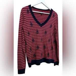 Tommy Hilfiger Women’s Nautical Striped V-Neck Sweater - Red Navy Pink Sz M NWOT