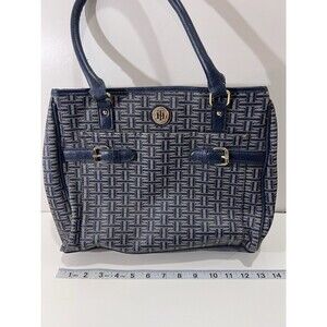 Tommy Hilfiger Women's Navy Blue & Gray Logo Tote Bag Handbag Purse
