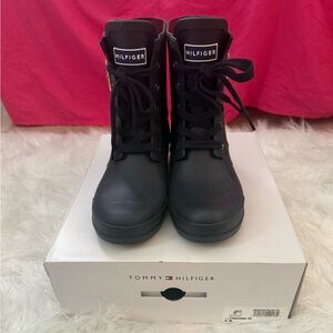 Very cute navy blue waterproof boots. Gently worn.Size 9. Cute with the yellow wind breaker jacket w/ navy blue trim currently listed in my closet. Bundle for a great price!