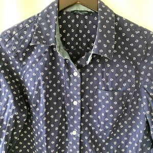 Tommy Hilfiger Women's Navy Long Sleeve Poker Dot Button Down Shirt Size Small
