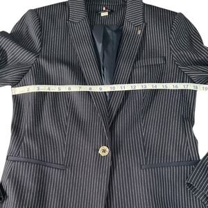 Tommy Hilfiger Women's Navy Pinstripe Blazer Size 10 Single Button Elbow Patches