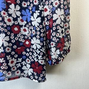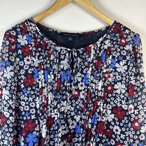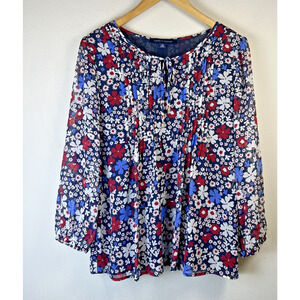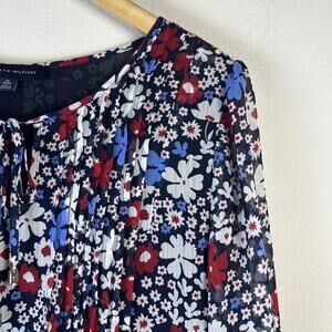 Tommy Hilfiger Womens Navy floral Blouse Size Medium Long Sleeve pleated Chiffon