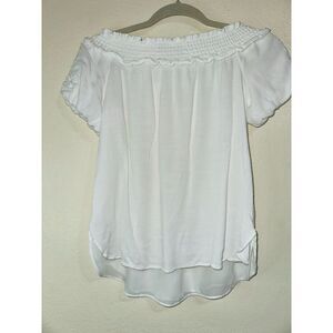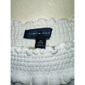 Tommy Hilfiger Women's Off The Shoulder Peasant Blouse Embroidered Sleeves SZ XS. Good pre-owned condition, no rips, tears, or stains.