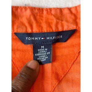 This vibrant orange Tommy Hilfiger top is a stylish choice for those who appreciate a casual yet sophisticated look. The check pattern adds an interesting texture, making it a versatile piece for layering or wearing alone. With its breathable cotton material, it is suitable for all-season wear.