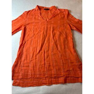 Tommy Hilfiger Womens Orange Check Pattern V-Neck Top Medium Cotton