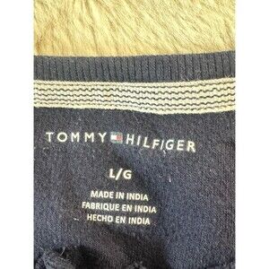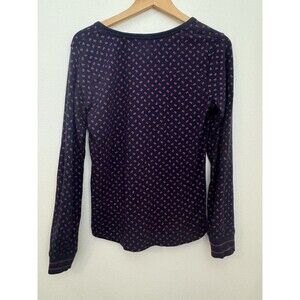 Elevate your sleepwear game with this gorgeous Tommy Hilfiger pajama top. The blue floral ditzy pattern adds a touch of designer flair to this comfortable top. The long sleeve top is made from a soft cotton blend knit fabric, perfect for keeping you cozy all night long. It features a button closure and is available in size L.