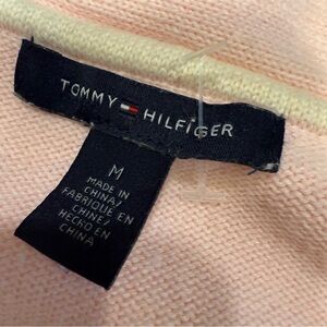 Excellent condition. Worn once. Women’s Tommy Hilfiger pink cotton V-Neck sweater. Embroidered monogram logo, long sleeves, braided V-Neck, ribbed side panels. Size medium. See photos for measurements. MSRP $89